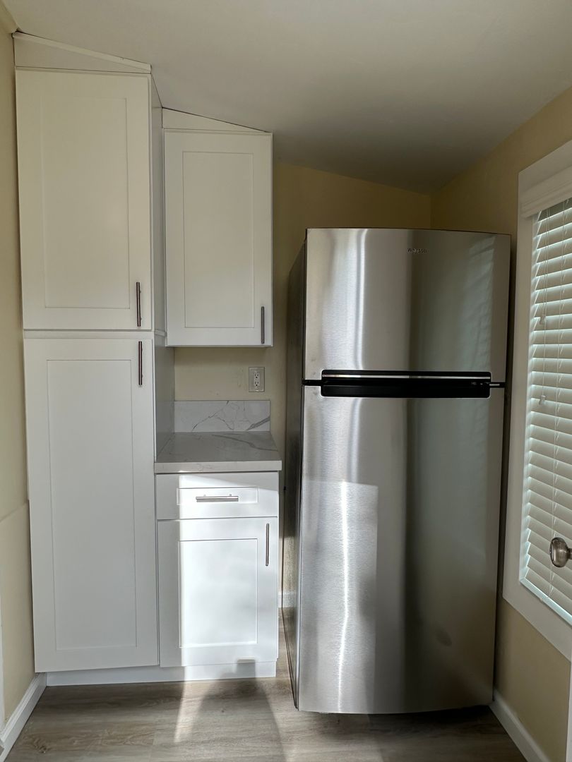 The kitchen and bathroom feature updated cabinetry, quartz countertops, and stylish plank flooring, along with stainless steel appliances, updated lighting, and ceiling fans for added comfort. Energy-efficient double-pane windows with window coverings help keep the home comfortable year-round.