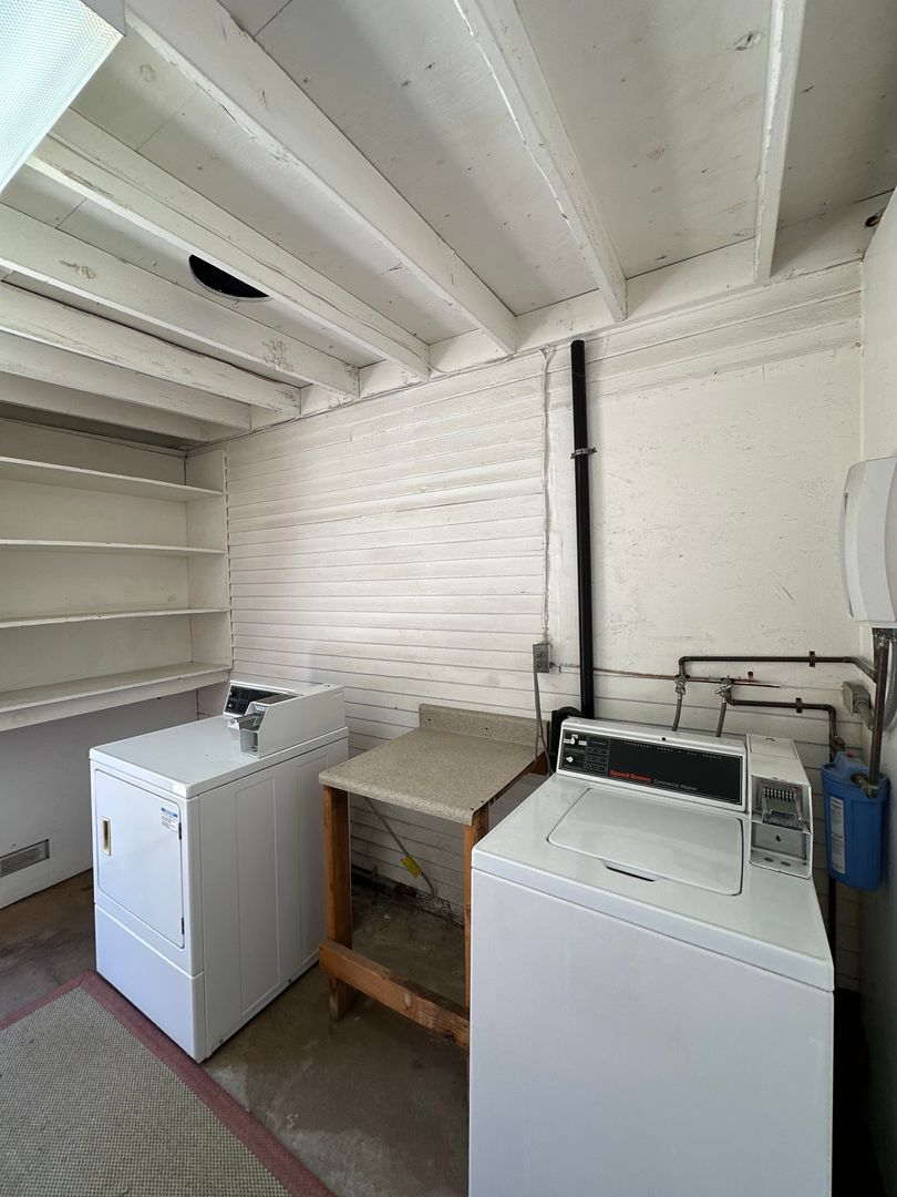 The home offers a comfortable layout filled with natural light. On-site coin-operated laundry is available, and a workshop with additional storage can be rented for $75 per month.