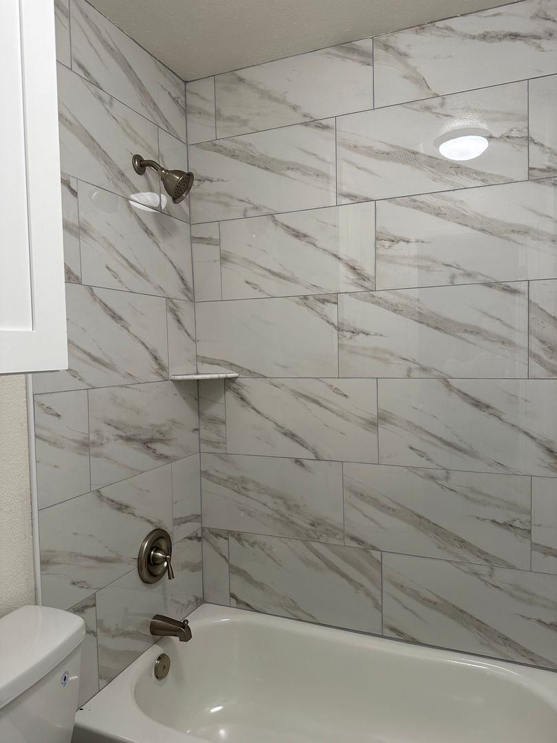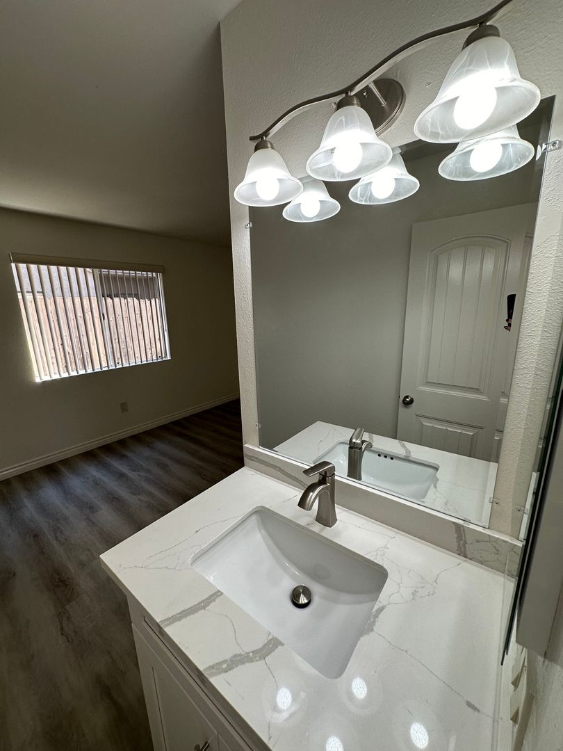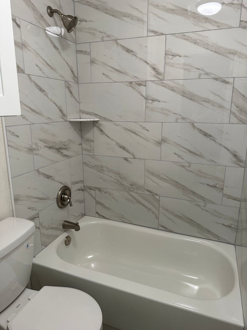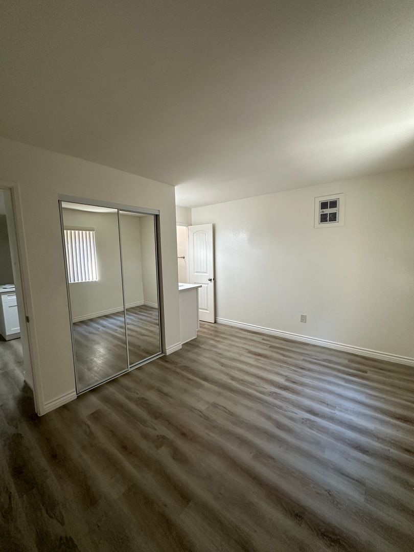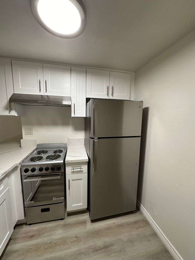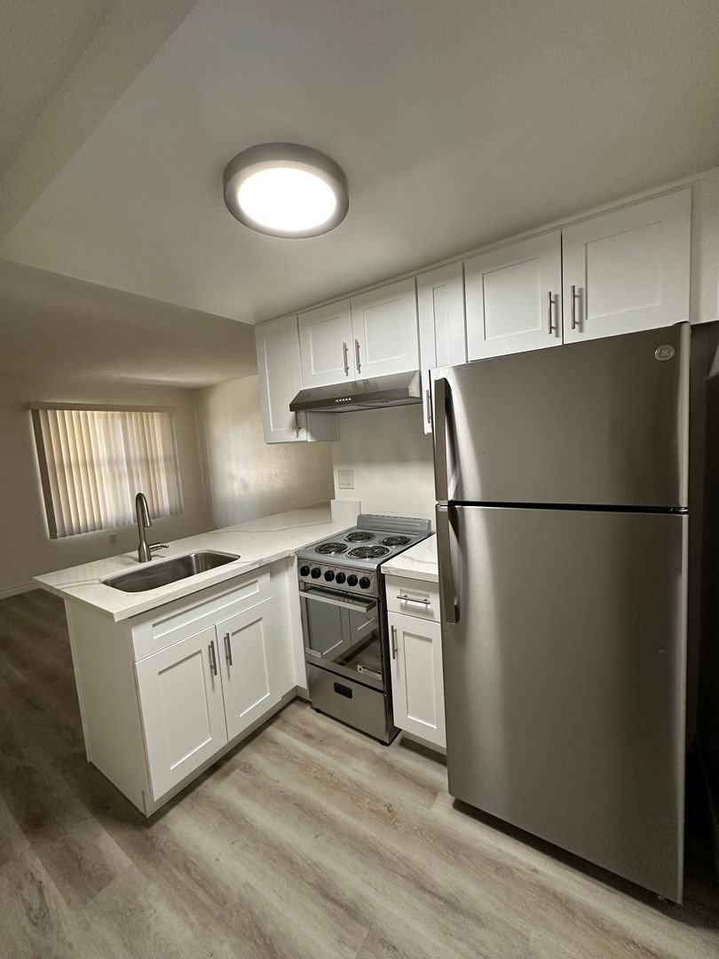 New Custom Kitchen Cabinets with Quartz Counter Tops and A Deep Kitchen Sink. All New Stainless Steel Appliances. Brushed Nickel Light Fixtures and Hardware. Spacious Bedroom with Mirrored Closet Doors. Totally Remodeled Bathroom from Top to Bottom. New Bathtub, Marble Tiled Shower Walls, Towel Cabinet, And New Vanity with a Quartz Counter Top. Water and Trash Are Included. 1 assigned Parking Space. Onsite Laundry Facilities. Close to Restaurants, Coffee Shops, Entertainment, Public Transportation, and Freeway Access.